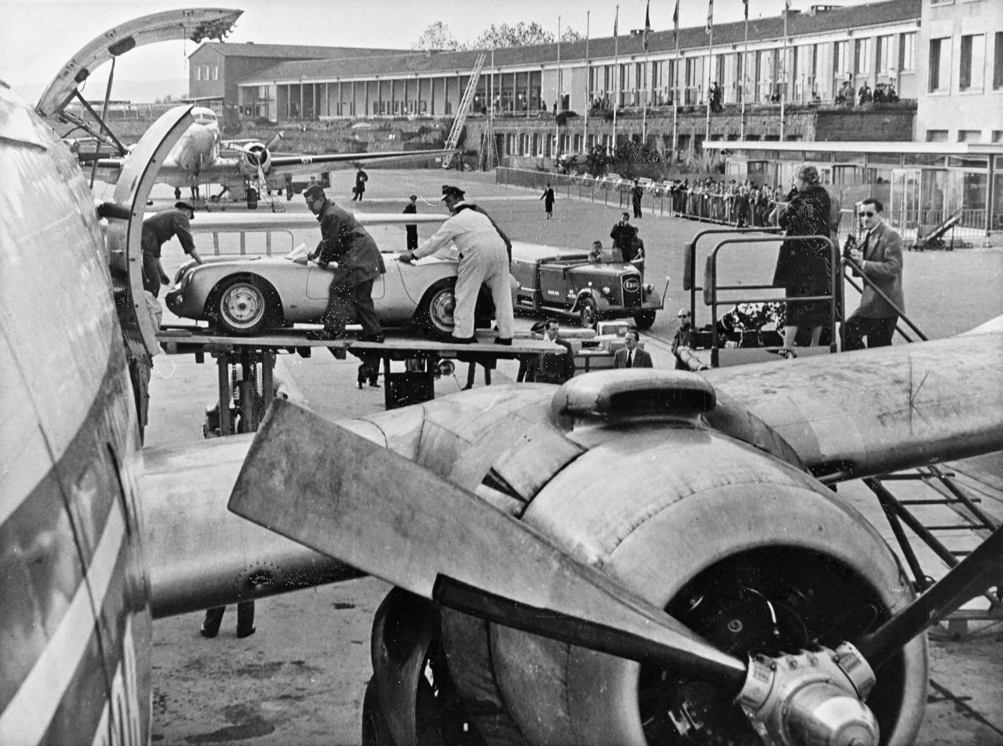 Zsa Zsa Gabor with a Mercedes 190SL, outside The Beverly Hills Hotel, CA - c1958