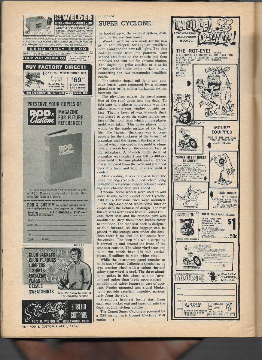 Thanks for posting the full article on the Comet Super Cyclone!! I read the whole article. Now I am sure that is the same car Ford donated to our high school auto shop. I remember it had massive cracks in the body work all around the back window.