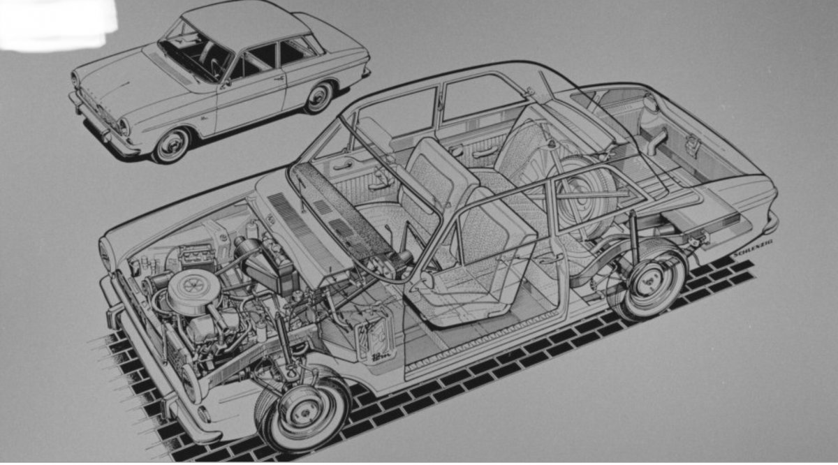 It looks like a Ford Taunus to me. Build in Germany. 1200px-Ford_Taunus_P4_12m_BW_1.jpeg