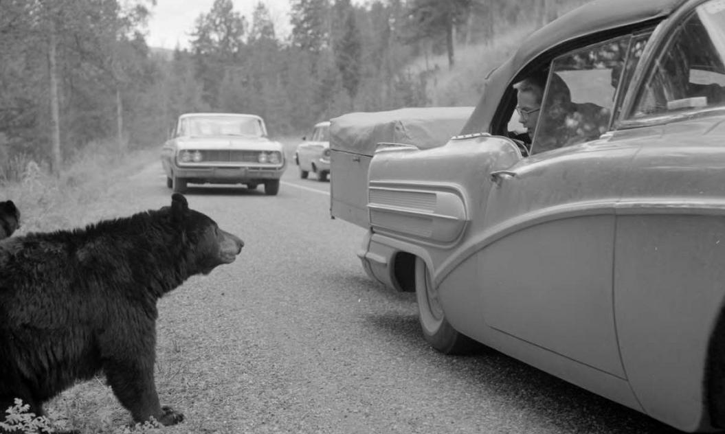 We were at Yellowstone on vacation when I was a kid in '54. We were in my mother's 53 Lincoln Capri hardtop with the windows rolled down. The bears were standing by the road and people including us were throwing food to them. Traffic stopped and we could not move. A bear came over and stuck his head inside our car. We were needless to say started but we gave it food and it withdrew. My dad was really pissed as the guy in front of us got out of his 54 Buick and was laughing and taking pictures of the whole thing. Those photos may show up here sometime, who knows?