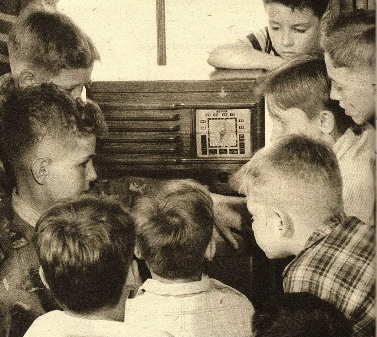 They're not "watching" the radio. They're listening carefully to a story, each one getting a different picture in their mind, using their imagination rather than having someone else plant visions for them.