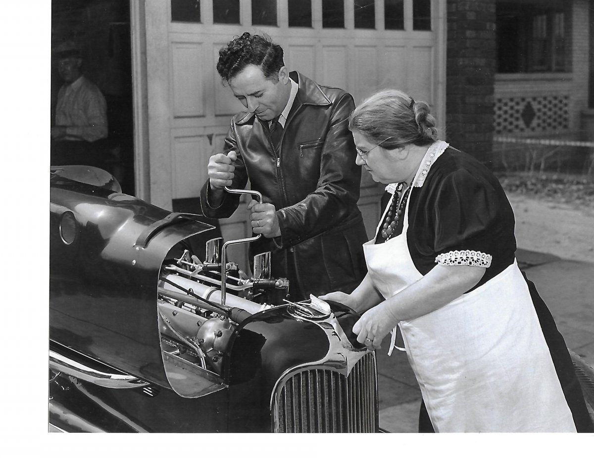 Joe Marks and crew. Joe's grandmother ran an Indiana grocery store and sponsored his racing. Joe with Tommy Hinnershitz at Indy, 1941.