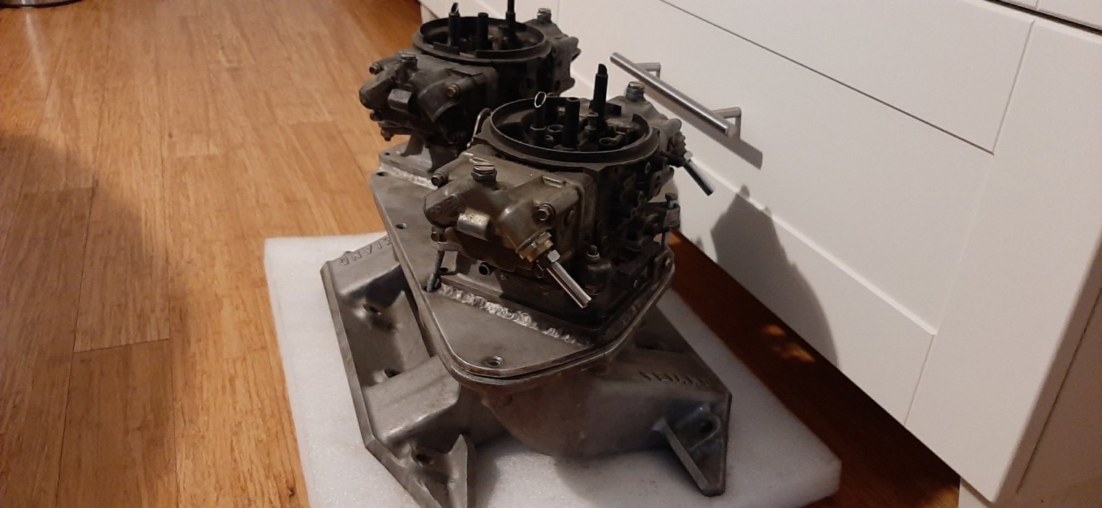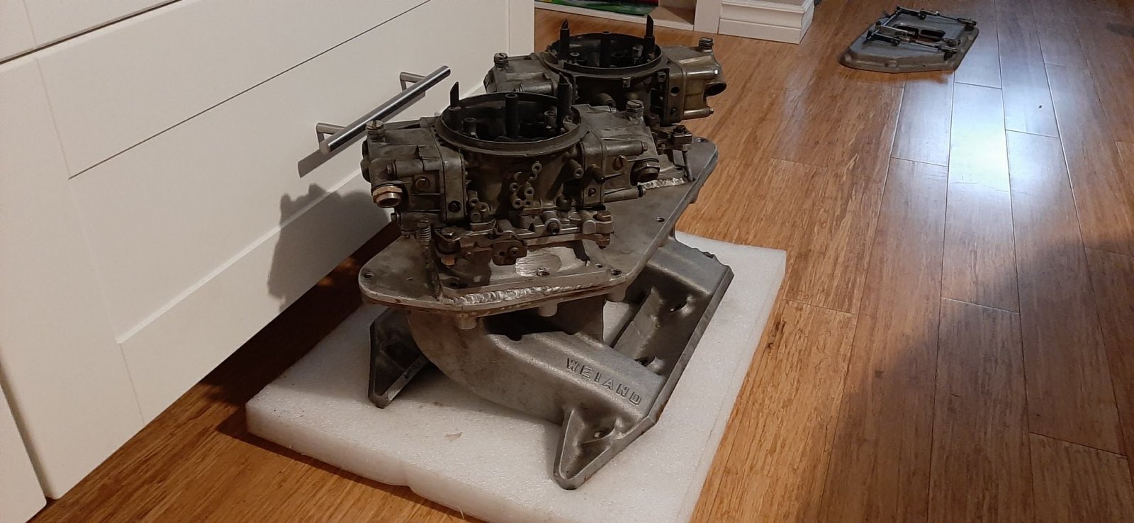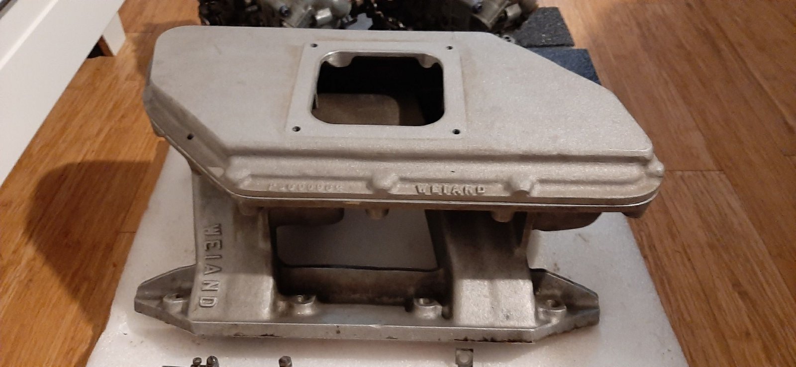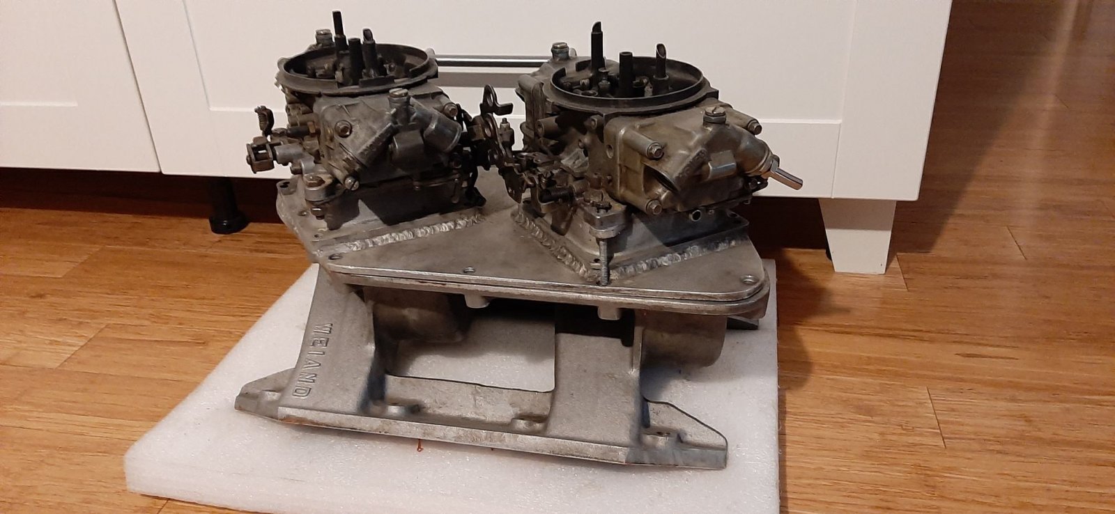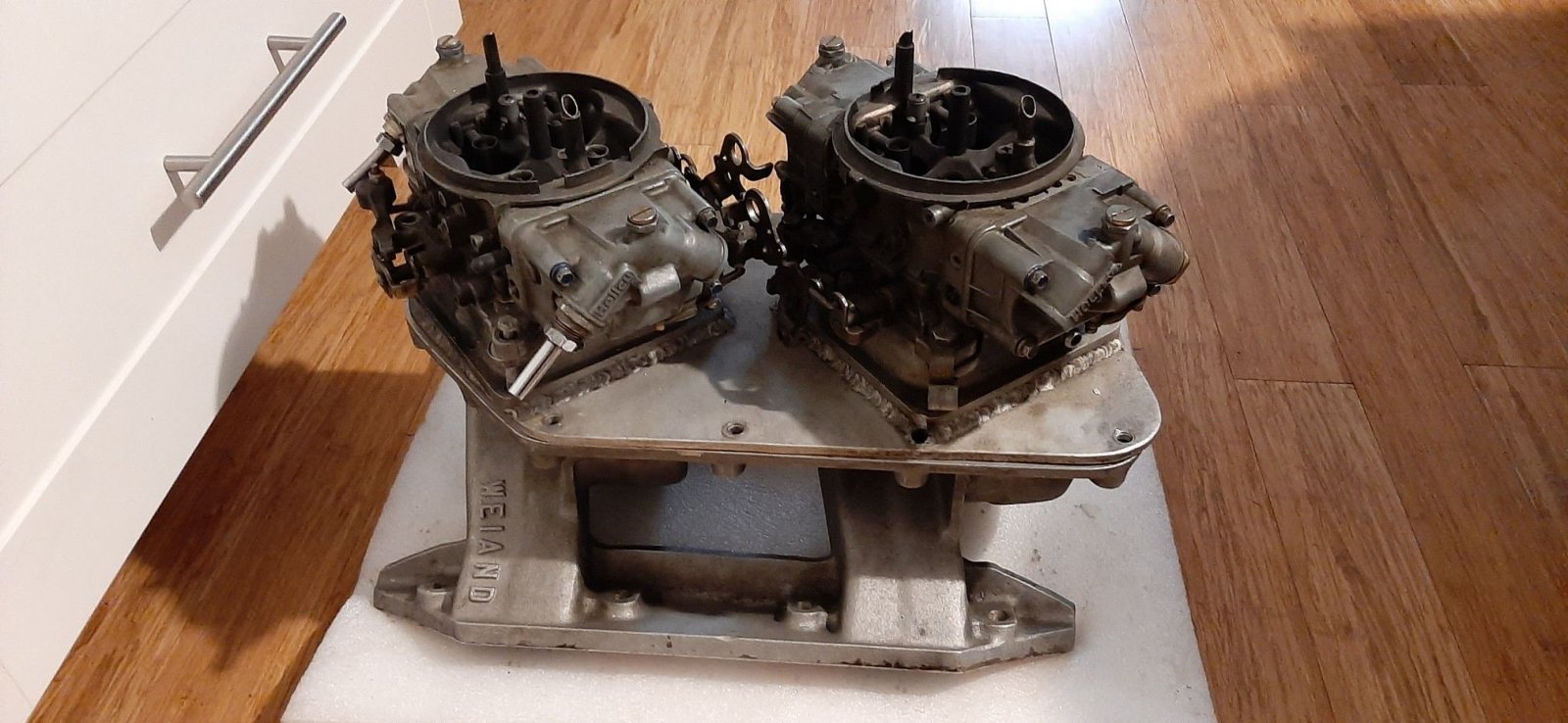 Fits 440/413/426 wedge Comes with homemade dual top Weiand single top Two Holley 750s Linkage Asking $1400