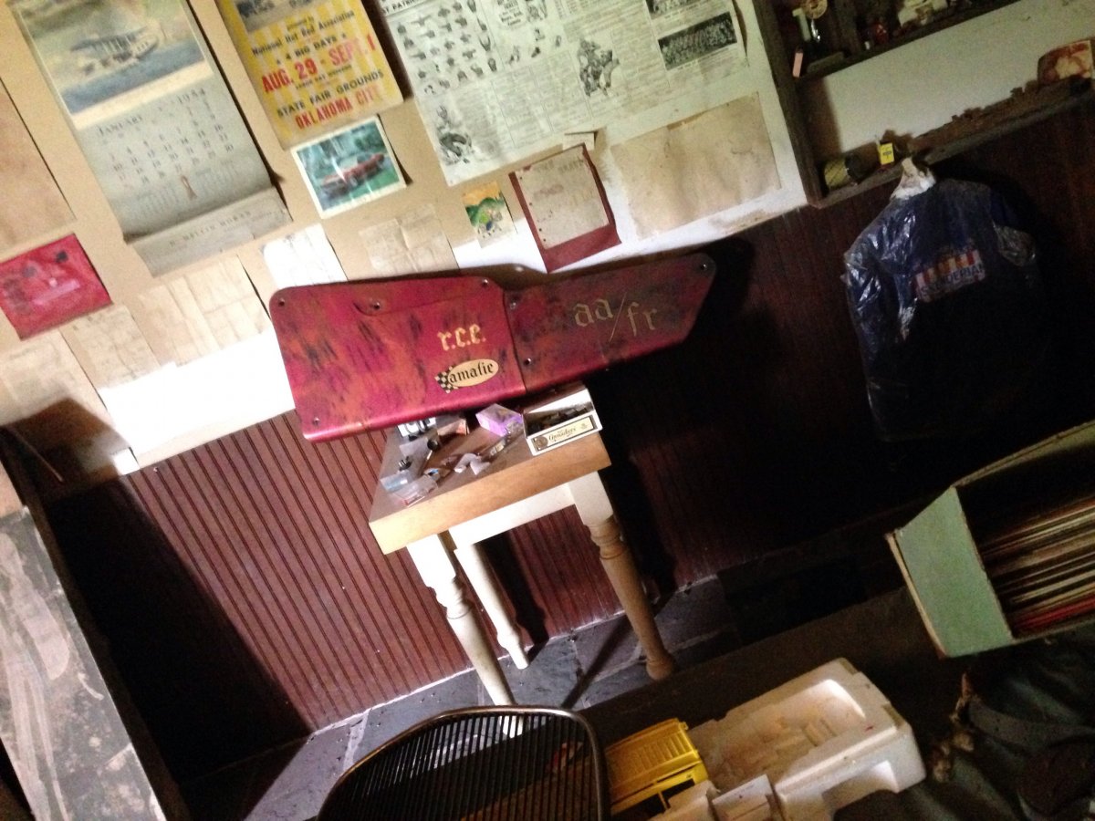 Here's some pics I grabbed from Walts other building while it was getting cleaned out. I did some Dumpster diving and pulled out a few things. The room where the trophys and stuff were in looked like a ski lodge ala 1965...kind of a cool looking spot. Besides the Olds there was an old 54 Ford convertible custom that was very rough, a nice 67 Riv, a old custom Van complete with boat portholes for windows, and some cool old speed boats.