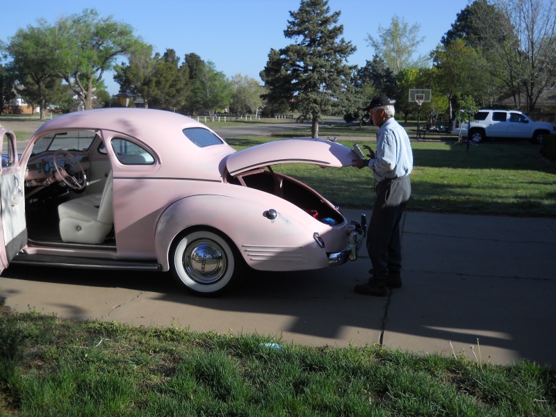 Wally's report <HR class="messageHeaderDivider colorK2" noShade _no_widget="true"> Wayne.......got home 2 minutes ago...no problems.....rebuilt the car fifty times.....wound up gun metal gray with red steelie rims...street rod look....bigger tires....new a- arms with disc brakes....single door windows...tilt wheel with different dash set up....got a mish mash of old and new now....dual exhaust ...need a more distinct sound.....engine stumbles off idle....my right foot will be a club foot now.....need to move the brake peddle over a bit....too hard of a throttle push....got lots of waves and honks and thumbs up ....even got a honk from the train heading east just outside tucumcarri....no offers for set though!....stopped at Russells for breakfast...made sure not to run up on the curb.....set in a booth so i could keep an eye on the car...had a tourest guy get out of his car and take a picture of the car