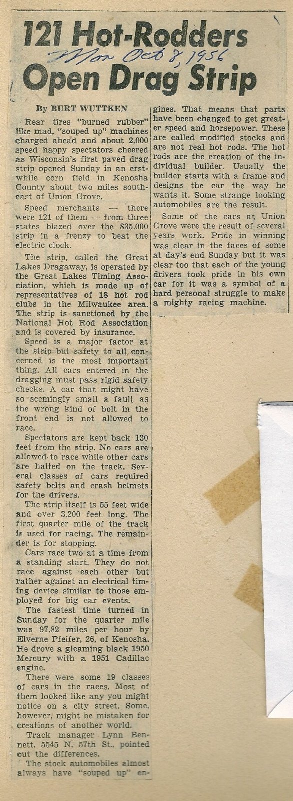 What a cool article thanks for posting this Curt. Fastest pass was a 1950 Merc running 97.82mph but of course it had a GM engine in it. The best part is where the article defines the cars and states "these are called modified stocks and are NOT real hot rods" that's a real history lesson right there. Thanks again Curt and keep them coming.