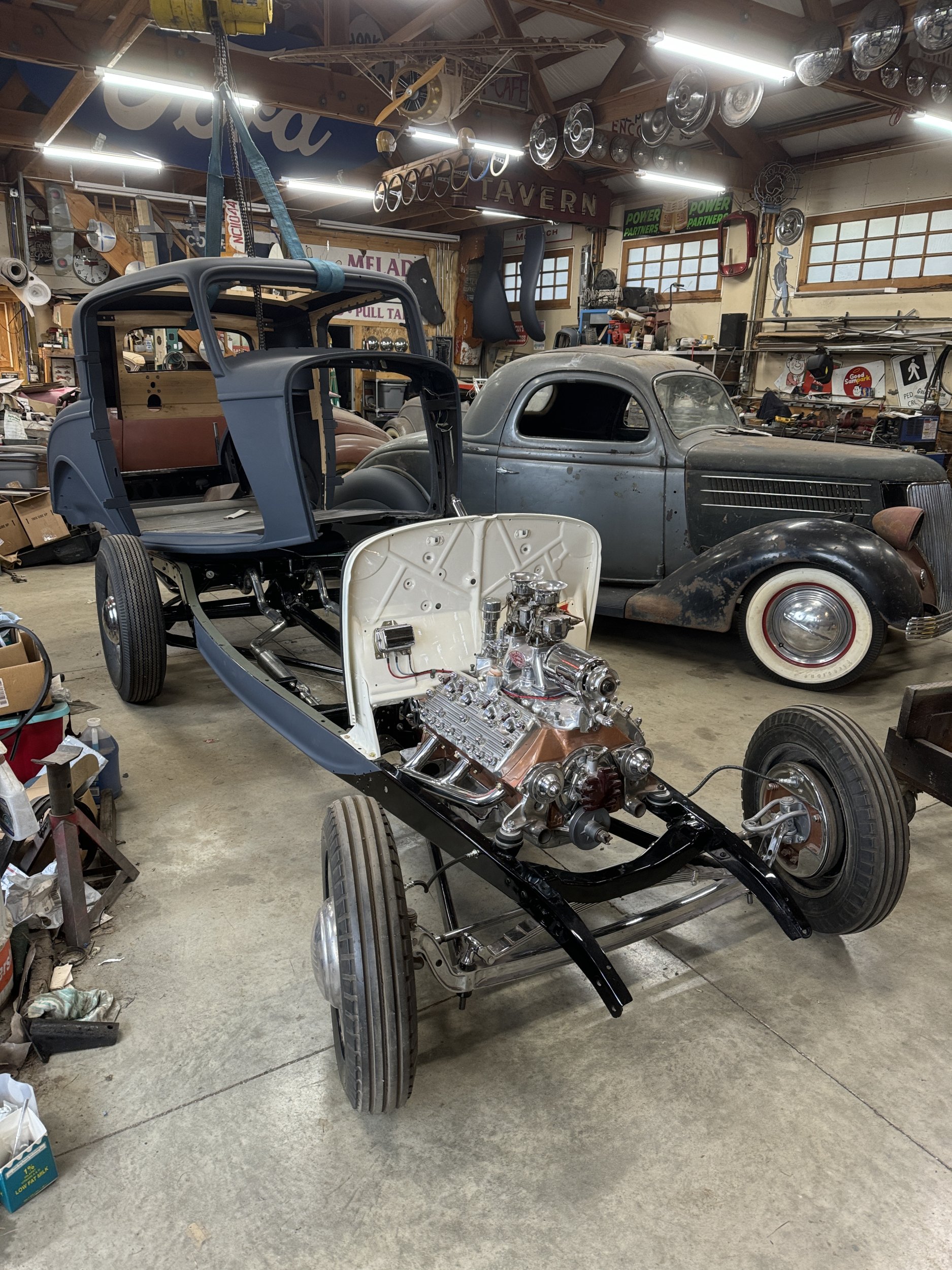 Had this 283 built for another project that didn't happen, so it found it's way to my sedan. Broke her in last night; did some fine tuning today. Yes my shop is in constant chaos and dis-array; no the wiring isn't finalized.