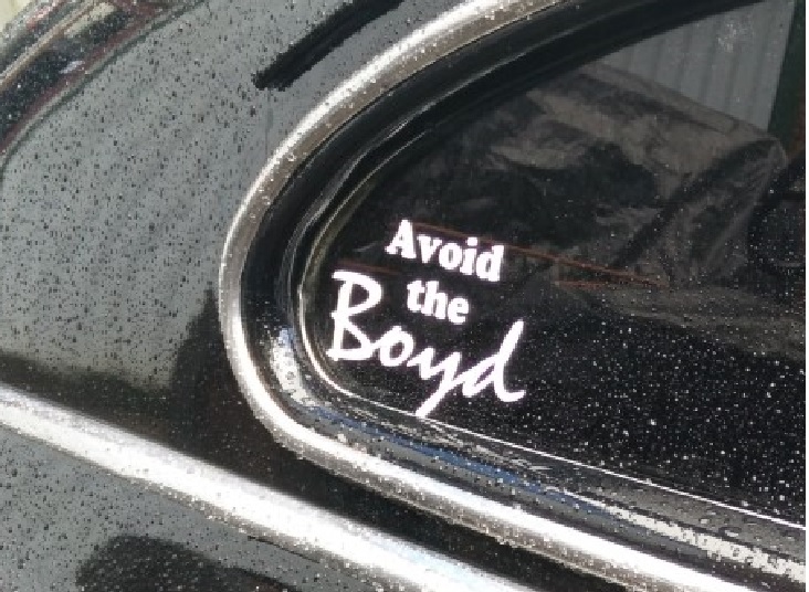 They wanted to put a huge version on my rear window of the 58 Impala. But, when placed on top with the backing to see what it would look like, it blocked the whole rear ward vision. So, I declined. But, they gave me a lot of smaller oval yellow stickers for the side windows and to give out to my friends.