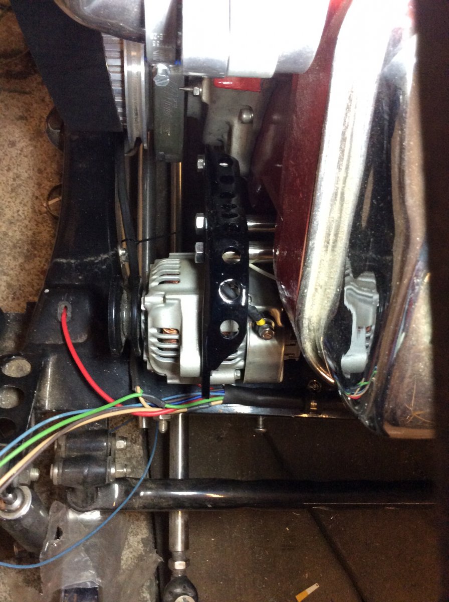 Here’s a view from the top.spent longer fiddling about with bits of wood etc than I did making the thing.2 of the bolts go through into the engine mount and the 3/8 bolt at the bottom goes into a threaded hole on the timing cover.