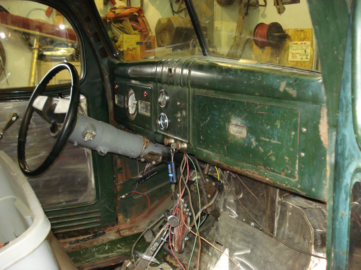 13. I had removed the C4 transmission from my 47, last week. Spent today, on a creeper, with 4-1/2 grinder and zip wheel, cutting portion on X-member out, to fit automatic overdrive transmission. Car is on jackstands, ceiling is 8 foot, so only so much room for me and the metal dust. Transmission is just touching the toe board, so tomorrow, will be hammer yielding day.