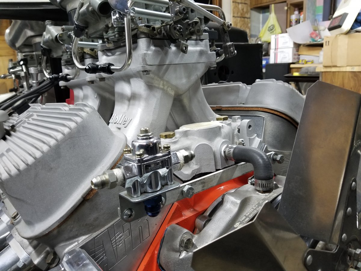 Spent a couple of hours getting the finale pieces on the Hemi so that I can get it on the run-in stand. Still need to make some kind of a timing pointer, but I draw a blank every time I look at the thing.