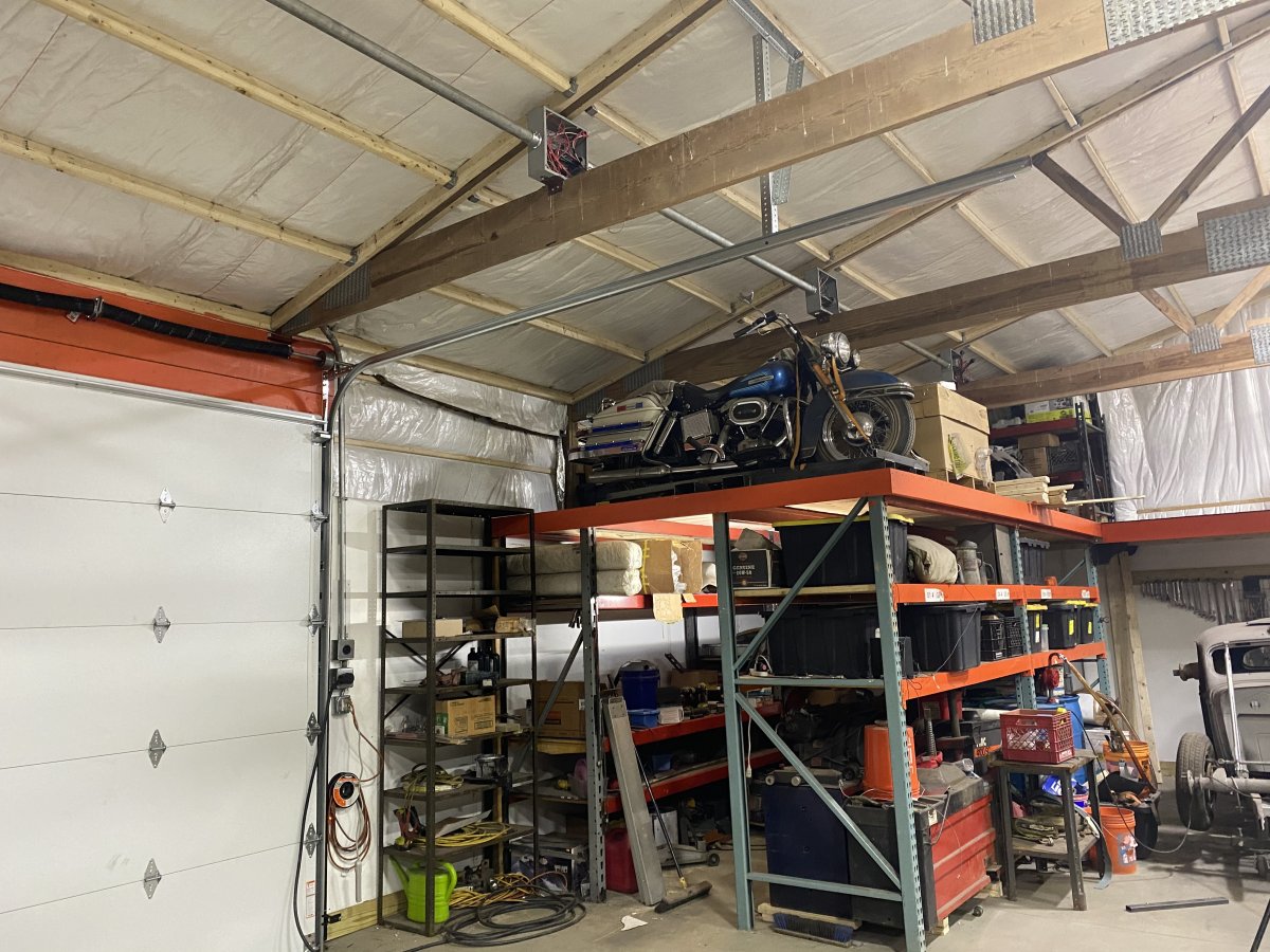 Safer keeping and frees up some floor space, at least while all the things in this place are in motion. Takes 5 mins to get down, deskid and put the skid back.