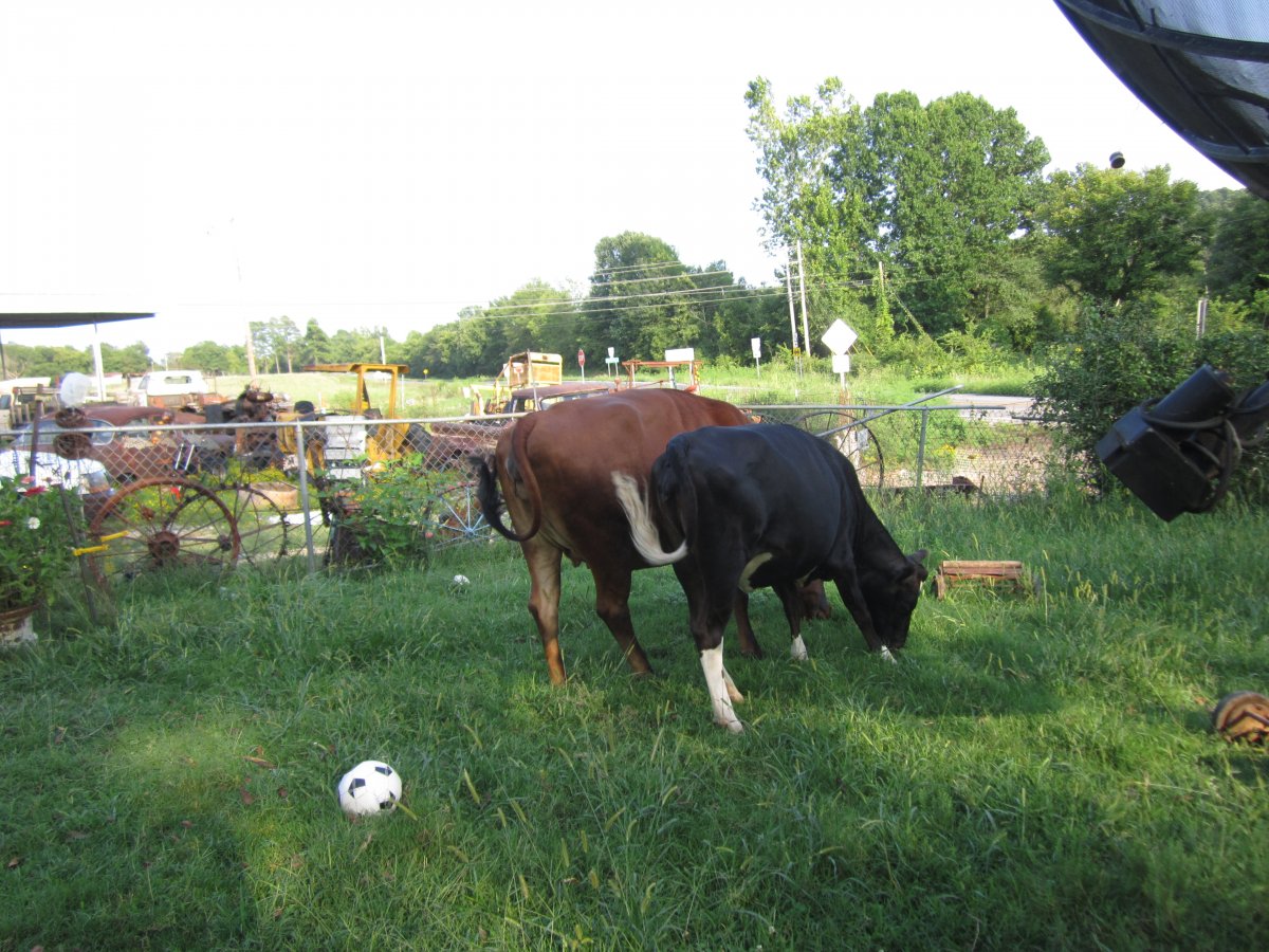 15. Her name is Baby Cakes. She is a real pet had her since she was a baby calf. Half Jersey half Angus. When she is fresh I milk her. She can swat you pretty hard with that tail. However you don't gotta push her. she ambles around looking for the most succulent grass. I simply set in a chair and drink beer and watch them. The only problem is they don't mow evenly.
