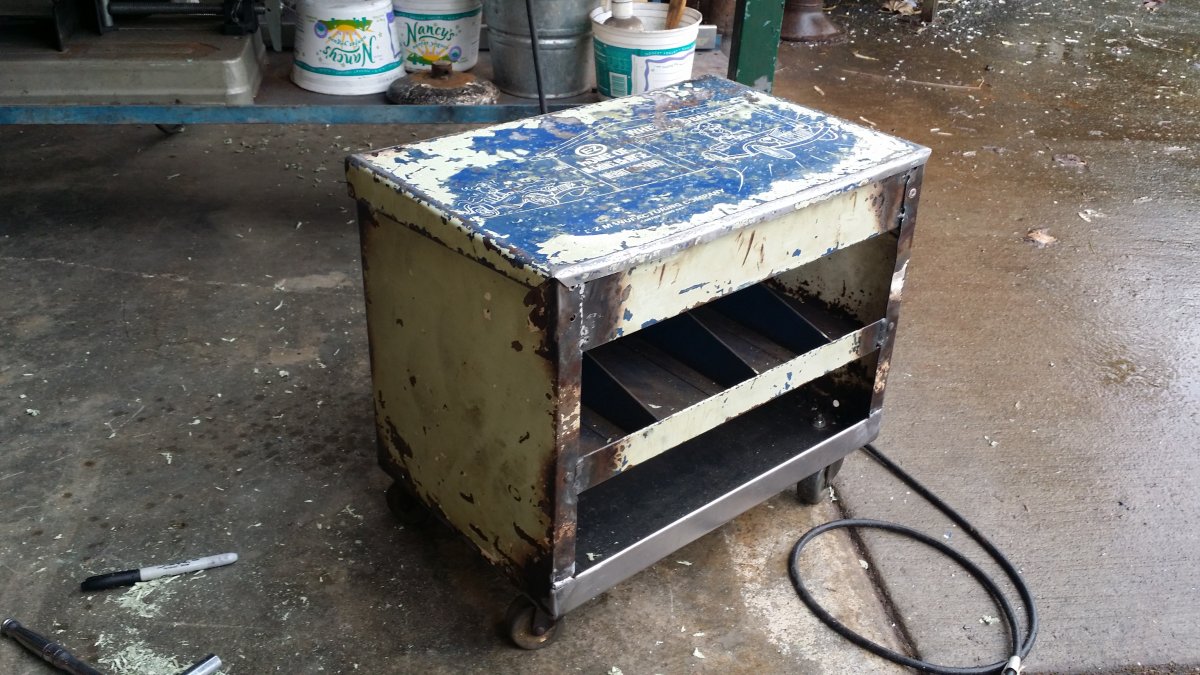 so I cut the old bottom out, bent up and welded in a new one and reattached the wheels,