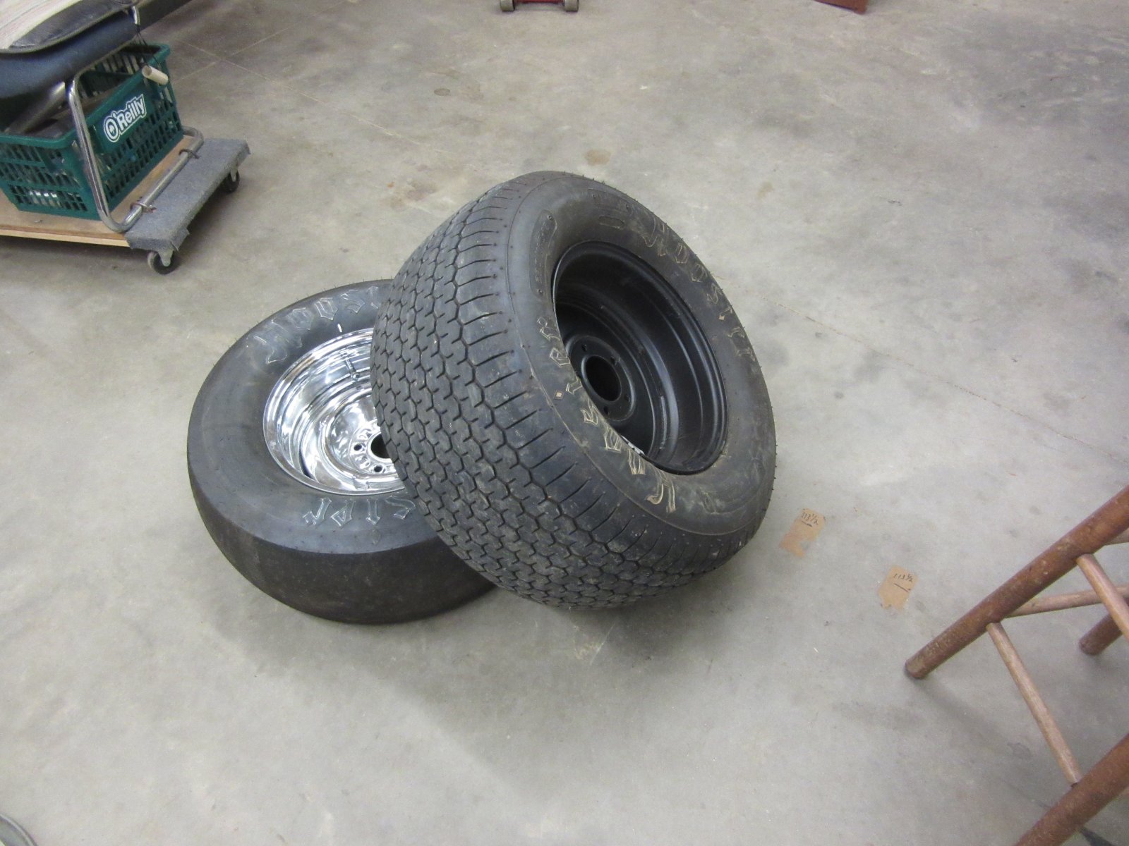 I hope to get a little Test n Tune in on Dec.2 at Farmington. So I put some slicks on and took my mufflers off, Lol. The slick combo weighs in at 36 lbs ea. and the other set up are 49lbs ea. The slicks are about an inch shorter so that is a plus also as the 4.10 could stand to be a 4.88. I have one aluminum brake drum and need to find one more, my mind is blank on what years they used them. Maybe the early 80's ? They came on mid size GM's. IMG_1094.JPG IMG_1095.JPG IMG_1090.JPG IMG_1089.JPG
