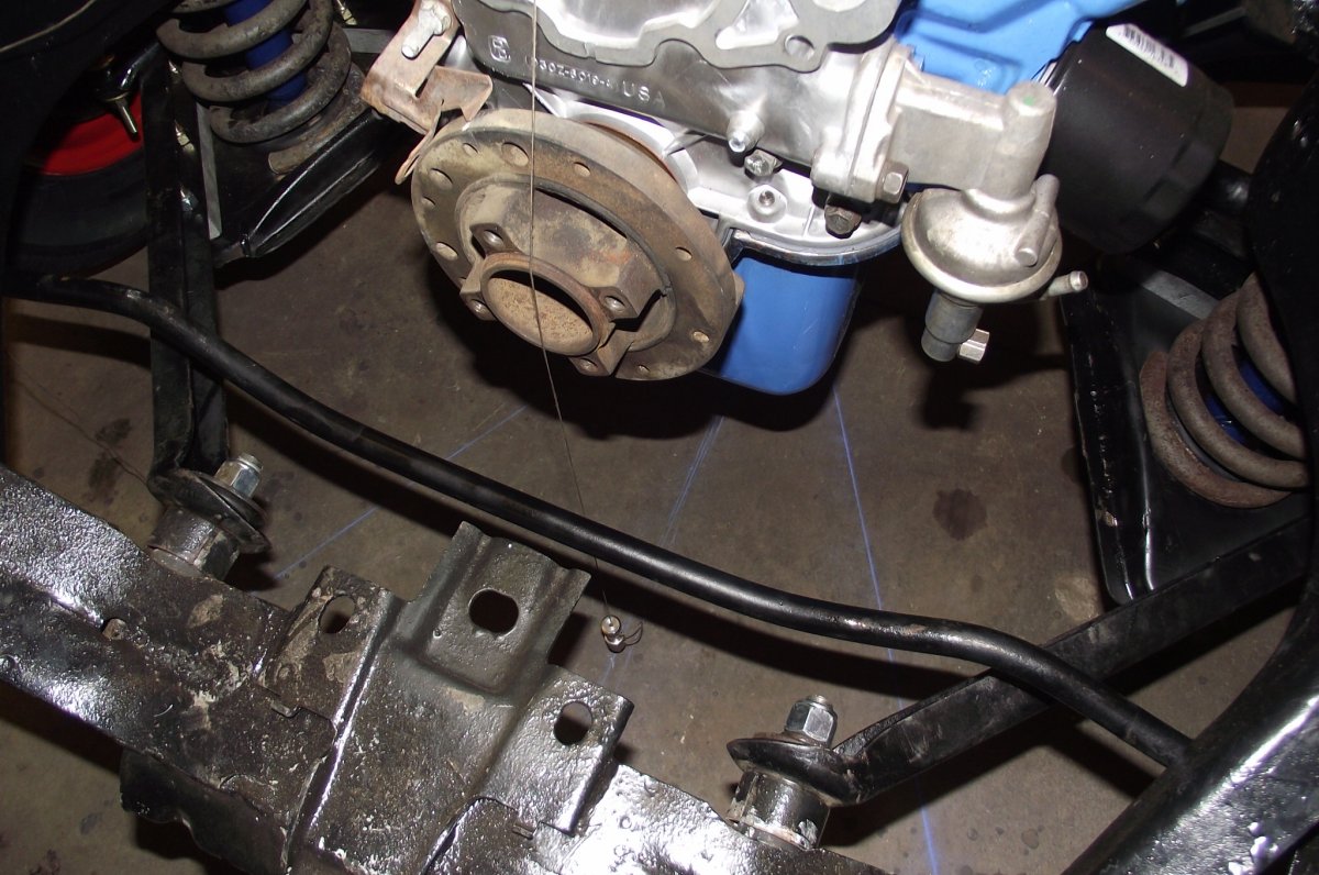 Got the 56 wagon frame sitting on all fours, ride height looks good so far. Started marking up the fframe center line to square up the engine mounts.