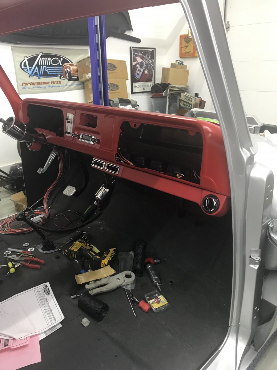 Finishing up on the A/c in the 65 chev truck . Ran the defr Chevy frame 015.JPG Chevy frame 017.JPG Trucks 013.JPG oster tubes and vent tubes behind the dash Got the new glove box in ! truck 001.JPG