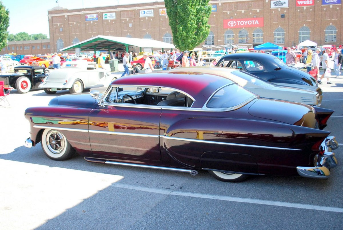 Great information guys! I really like the scallops on the second version of the '58. Thanks for letting us know Mr. Hall sold his Chevy @Sum54ford. I couldn't have parted with it! The cool finned '58(?) Chrysler sitting by the Chevy in one of the pictures must have been owned by a friend of Cecil. It was cruising around with the Chevy on the DVD shot at the Leadsled in '94. Man @John B, I've seen the Chrysler at the Leadsled a few times. Since my late friend Charlie was always a Mopar man first and foremost, every time I see a Mopar sled I check it out. A few years back when me and Mitch were walking around the show, we saw the Chrysler. We talked over how Charlie would have loved the car, and how the scallop job looked like a sample of his work. We stopped and talked to the owner for a few minutes letting him know how much we liked his car, and telling him about Charlie. Super nice guy. It had to be Cecil. I'm ashamed to say I didn't get his name or give him mine, but I'll guarantee this--if I see the Chrysler at the show this year, I'm going to make it a point to walk up to Cecil, introduce myself and thank him for his dedication to customs! E