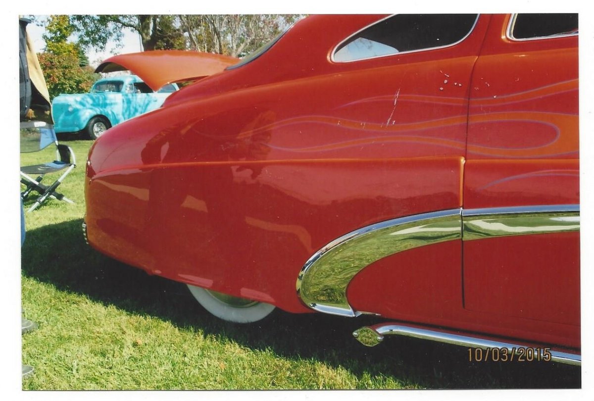 With a few days off for the Christmas holiday, here are the pictures of the most interesting fenderskirts-rear quarters I`ve seen. You can see them on the 54Delray post on the teal version of the Weir Merc. It would be interesting to see them off the car. And who was the craftsman who fabricated them. Scan0029.jpg Scan0030.jpg Scan0031.jpg