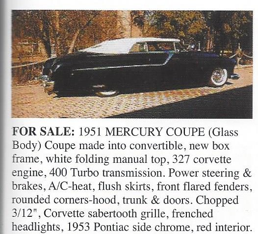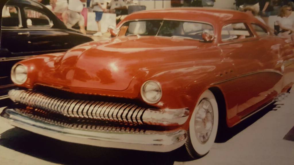 Im thinking that this is rons merc but closer look the frenched lake pipes either a nice coppy or some added touches later buick side trim and spots added , has same treatment to hood, chop, color ,pretty much same car especially the grill my pic was dated 1993. Not sure when ron had his