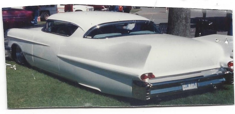Ed, Ron was in Indy last year with his 51 Merc. My pic`s are still on my camera. I was able to meet him. The first pic is his Pontiac in the Trebndsetter in 93. I love the bubble skirts. The second scan was when he was nominated in 2002 for the Hall Of Fame. and the last pic is of his Cad in Davenport Iowa Merc/Duce Reunion(99) or the year before in Davenport for the KKOA show(98). I think, in his Cad, He used a chrome spoke bicycle wheel with a white tire for his steering wheel. Most people don`t have a clue who he is.