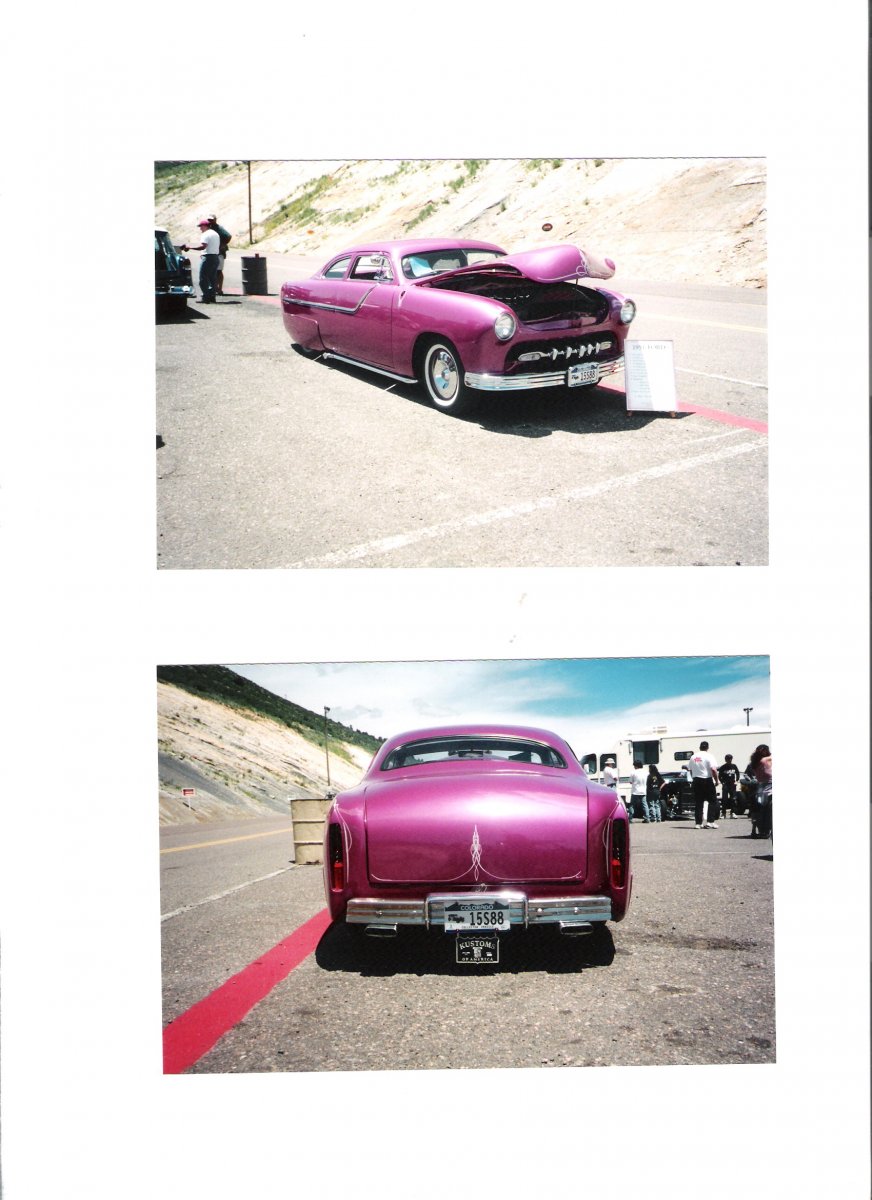 I looked but don`t have any other pic`s of his Merc. Here is a pic of his T-Bird that is for sale in the classifieds now. Notice that the opposite corners have been restyled differently to match each other. @Sancho or someone Post Dr Dave`s pic and Scott Pavey`s pic of the front of his Merc. They are almost identical at the same angle. But at two different shows. It`s good to see other pic`s besides mine. They aren`t sun faded and don`t have staple holes in them. Keep up the good work ED.