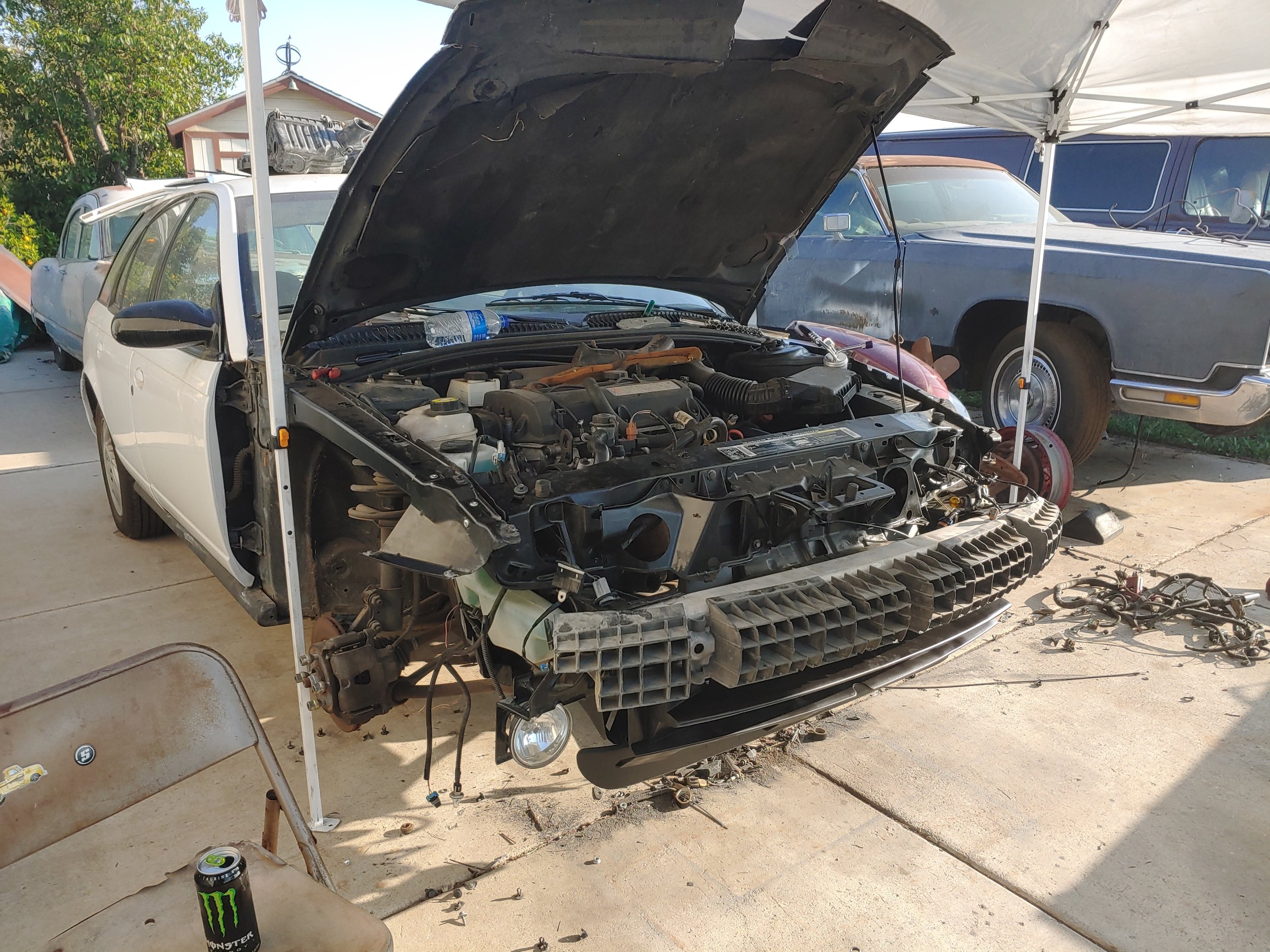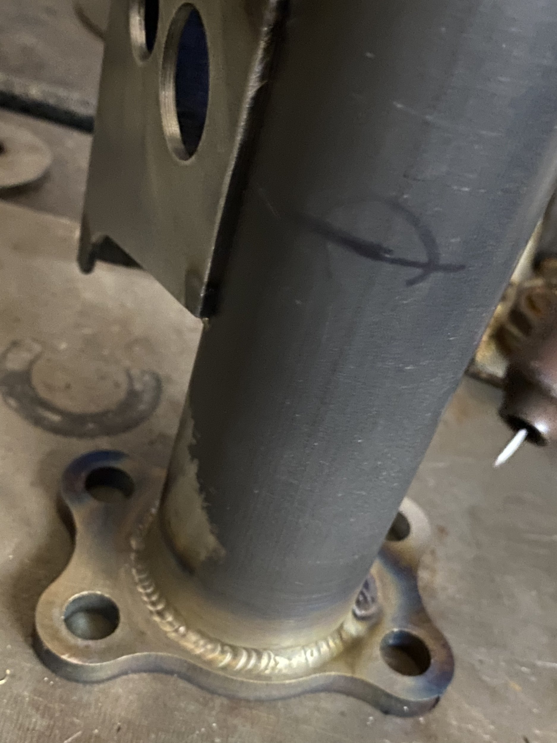 It's never a proud moment when you have to beat on header tubes. But the ones on the El had a bad interference issue with the new heads. So bad my efforts with high temp sleeves on the boots were just burning through slower. A proper set will happen at some point. Careful marking, one had to be worked in the car because it just wasn't coming out. Had to unbolt and shift it to where I could get at it with my air chisel dimpler I made by cutting and rounding off a panel cutter.