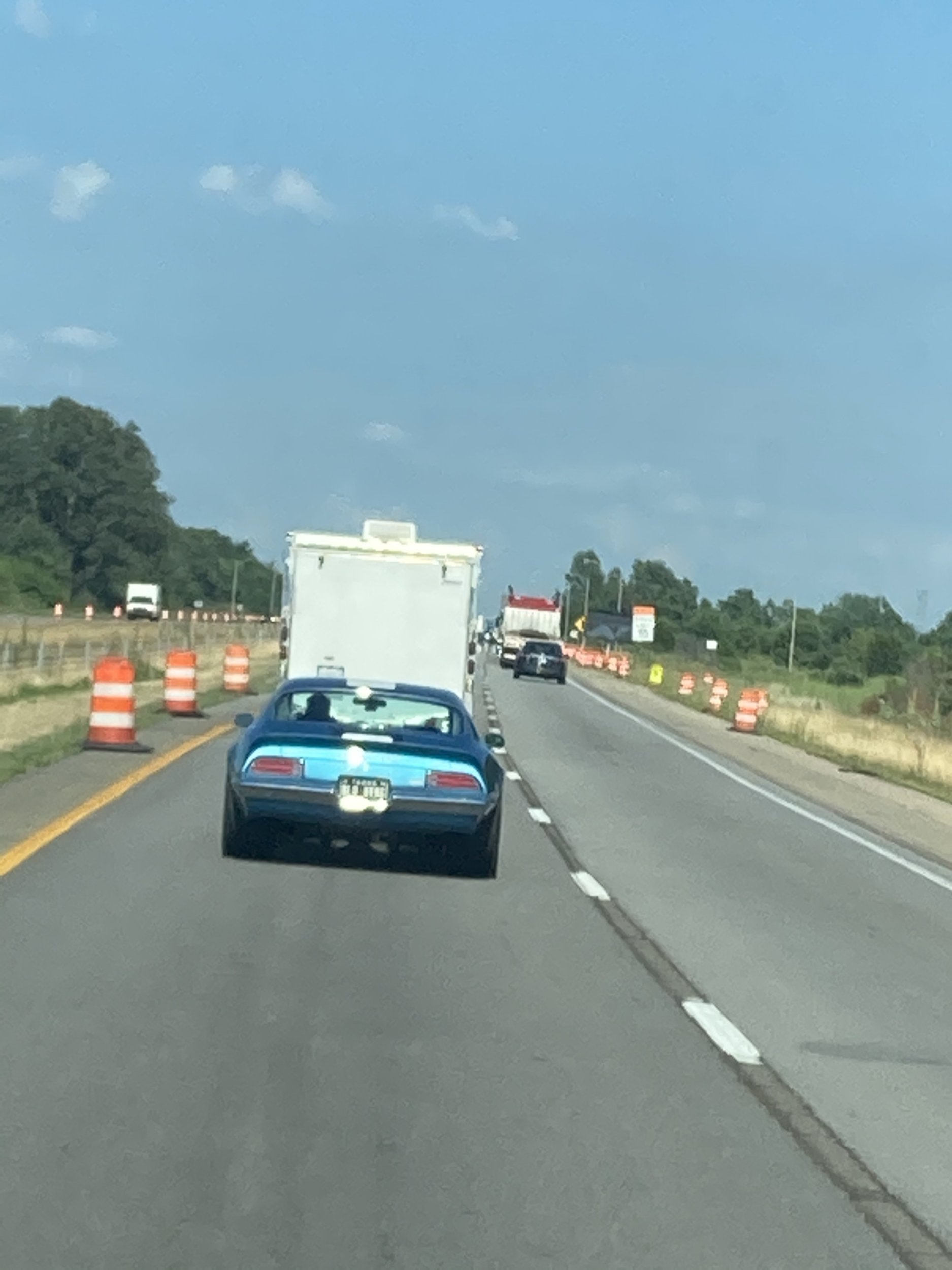 Early 70’s Trans Am out of Texas on 70 WB in Indiana...appeared to be a high end pro tour It was Nice!! Probably going to Good Guys Columbus