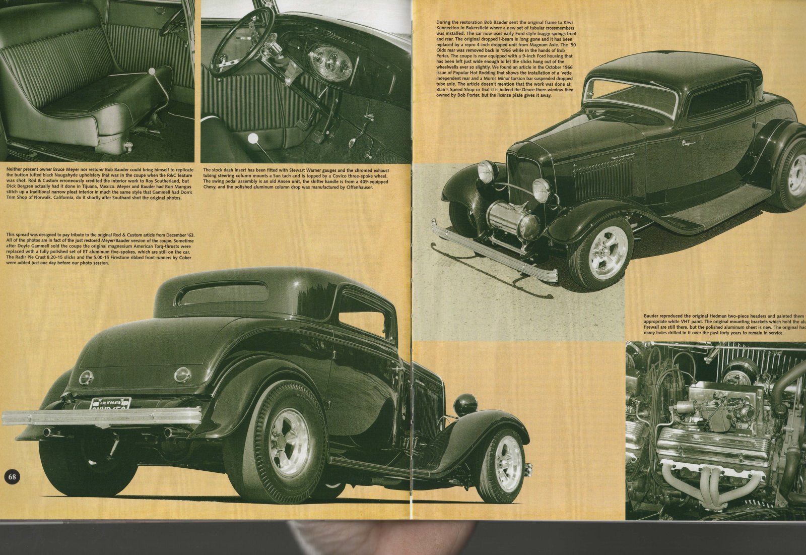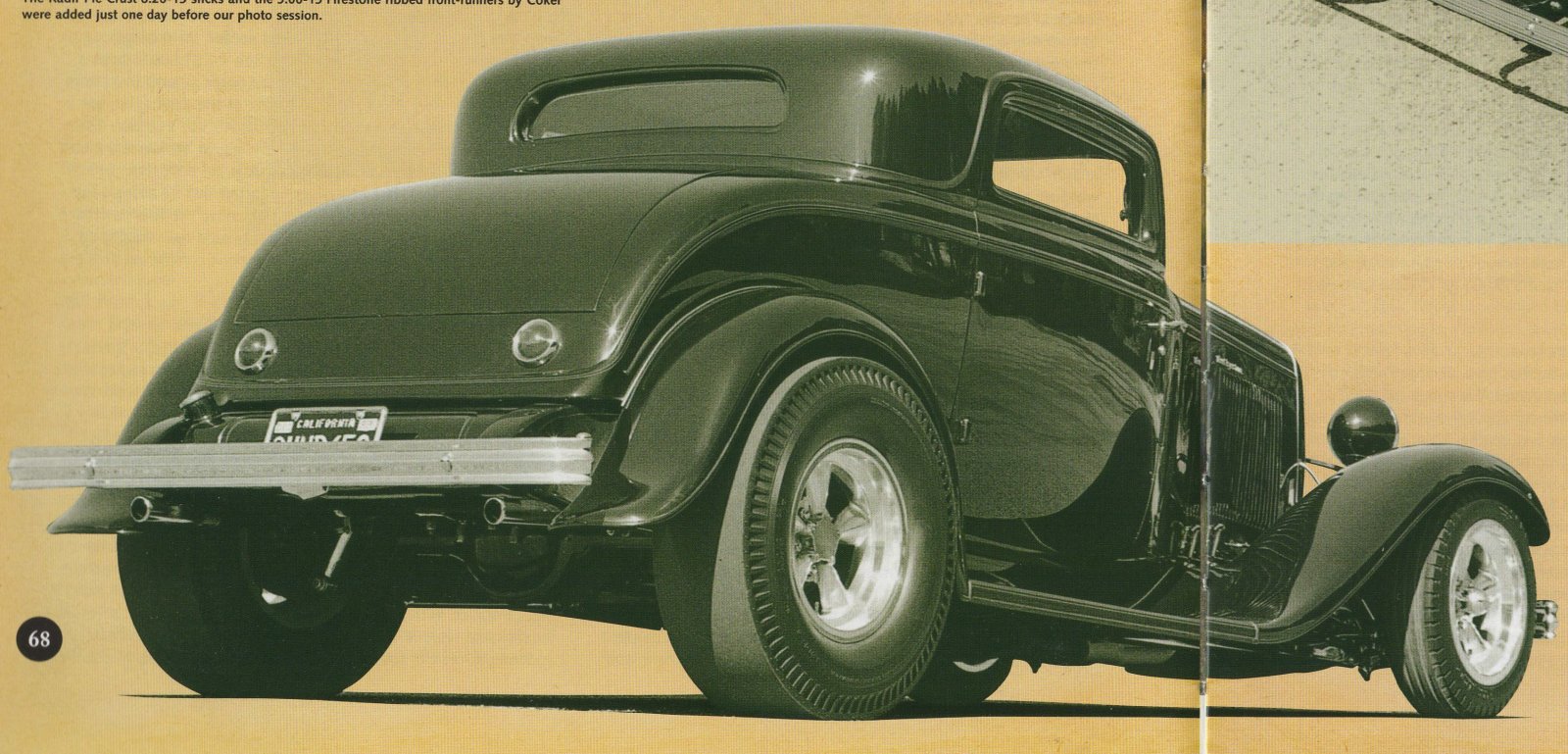 1932 Ford Victoria Sedan Hello, There is no such thing as a “perfect rake.” But in the eyes of the owner or builder, what is before your own eyes is a rake that seems to be fitting for the type of hot rod. How one gets the rake is varied, so, use what you have. Rake gives a little attitude for most cars. Despite the abundance of chrome rims on a lot of street hot rods, the true look was to emulate the drag racers with the newly created American Racing Magnesium 5 spoke wheels back in those early days. Some took those real ones and adapted them to street use. Then, when the American Racing Company specifically made them for street use, the styling took off like a wildfire on the loose. No fake 5 spoke copies for this 32 Vicky sedan. Norman “Rabbit” Samuels is/was a Long Beach local guy that was involved in all sorts of hot rod/drag racing builds. When he was associated with Reath Automotive race car builds, it just worked out for him. Then finally, he was known for his involvement in the famous “hot rod for sale business” called “Stick City.” It was a place to see a daily car show of many different styles of hot rods, race cars modified for the street and certified used cars. Jnaki This 1932 Vicky sedan was one of his creations and gave off the hot rod/drag racing influence to all those that saw the rake angle and from the rear when going down the street. One of the coolest looking 32 Vicky sedans, a custom hot rod built for the street and for the numerous car shows that were all over So Cal during this time period.