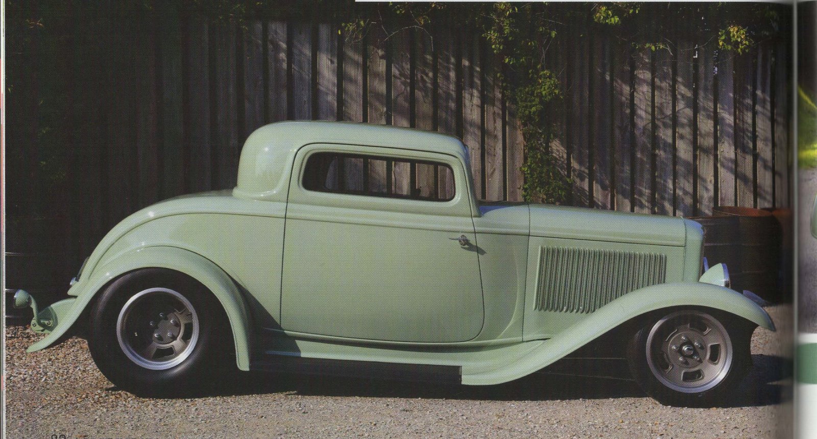 When you start looking at what meets your idea of a proper rake, also notice how the tire sizes affect the look of the car. A front tire thats too small or a rear thats too tall can distract from the rake you choose. Also know that some people move the front axle slightly forward to center it in the fender. The wheels (IMHO) tires look best when they fill the fenders well and the rear is pretty close to the outside lip. All those factors should be considered when trying to achieve a look that you want. Here are some examples. The first one is the Doyle Gammel coupe which is a well known Icon and the top chop was done by laying the front A pillars back instead of extending the roof to keep the original A pillar angle. This coupe is considered by many to have the perfect chop..........which will also have an affect on the look of a cars rake. So lots to consider besides just the angle. This is why I love my subscription to the Rodders Journal. They do a lot of stuff like this on 32 Fords both finished and chassis pictures. Might want to think about getting a subscription.......... I will post some more pictures and you can look at how those details I mentioned are slightly different from car to car and see what YOU prefer. My opinion: would look even better with a slightly larger front wheel. The four link is too close to the ground but otherwise well done. My opinion: Too small front and a hair too much rake. My opinion: Looks very good even tho rake appears minimal if any.Might want a larger rear wheel to bring it higher in the fender lip. My opinion: Only change I'd make is a larger front wheel and maybe closer to outside edge of fender. My opinion: Needs larger front wheel and slightly less rake. My opinion: Looks good for that style. Rake is perfect......But I'd want larger rear wheels. My opinion: Badass I like it. My opinion: It just doesn't look right to me. My opinion: Needs larger wheels all around....especially in the rear. My opinion: Not a 32, but a good example of how a mild rake can look. My opinion: Well, its an Icon but I still think it needs bigger tires. Way too much fender well showing. My opinion: Purrfect.......... Notice the mild rake not overdone My opinion: Little more rake but still looks very very good. My opinion: Tires too far up in fenders but a nice car. One other thing that I see on several cars. The running board cover doesn't look long enough. It stands out more on a light colored car. My opinion: Here is a very similar car to compare the details on. I like this one better. So this hopefully gives you some fodder for thinking about what looks best for YOUR tastes and how small changes and details can affect the finished look of your car.