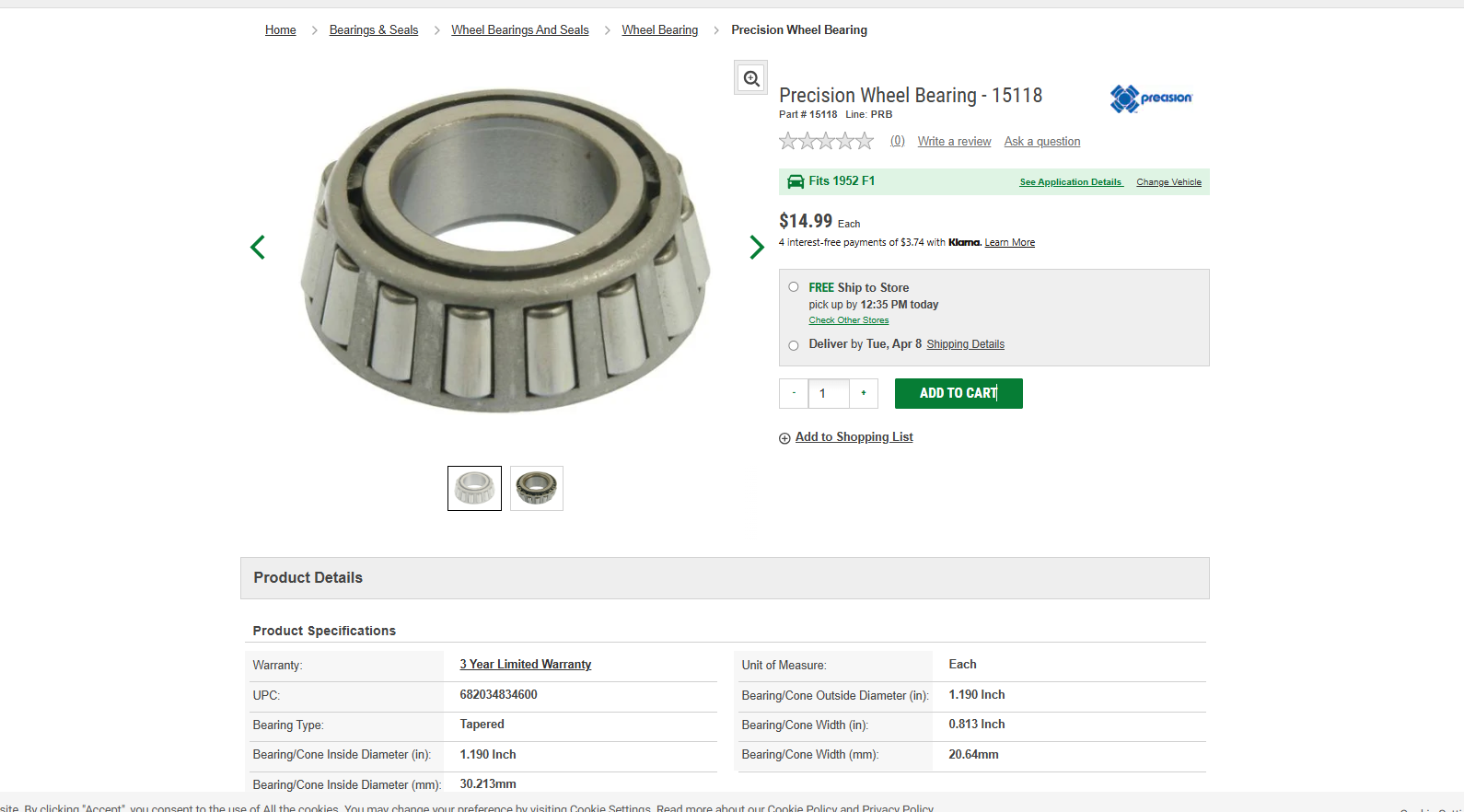 Trying to get my Model A to round up this year. However, the brakes need to be addressed. I ordered the speedway motors Buick drums and hubs. As always things are not what I thought. I actually have 48 - 52 Ford square back spindles on my car. It seems that the outer bearings are the same part numbers 09074. The old inter wheel bearing currently on the car (part #14130) is a bit larger than the included 15118 bearing from speedway. Has anyone gone through this already and have the correct bearing part number to fit these 2 together?