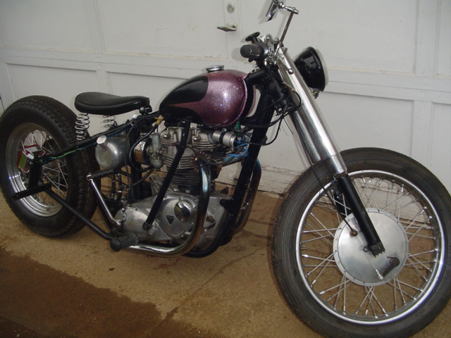 Update: Here is my gay/feminine project. Yes, it's OT, but thought you'd like to see the results. Pics were taken in the rain, so maybe I'll post another when the sun comes out. Used hot rod satin black from ebay, & thought it wasn't satin enough, so I cleared & flattened some to get the finish I wanted. Then, after talking to elspock84 & detonator, I went with .008 from Sparkle EFX. Color is "Hello Pinky." Now, if I can figure out why every time I hook up the lights, the bike quits, I will be in the wind.