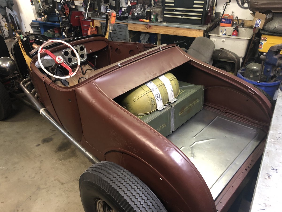 Heres a 26 I've been slowly tinkering with. Im going for the early gow job look. Ive got some early Houk wire wheels that I'm restoring for it. I reversed the spring eyes but eventually I want to lower it more. Also thinking about putting the side aprons back on. The windshield will also get chopped. Im trying to keep it a running driving car as long as possible while doing everything on a shoestring budget. 20190331_112222.jpeg