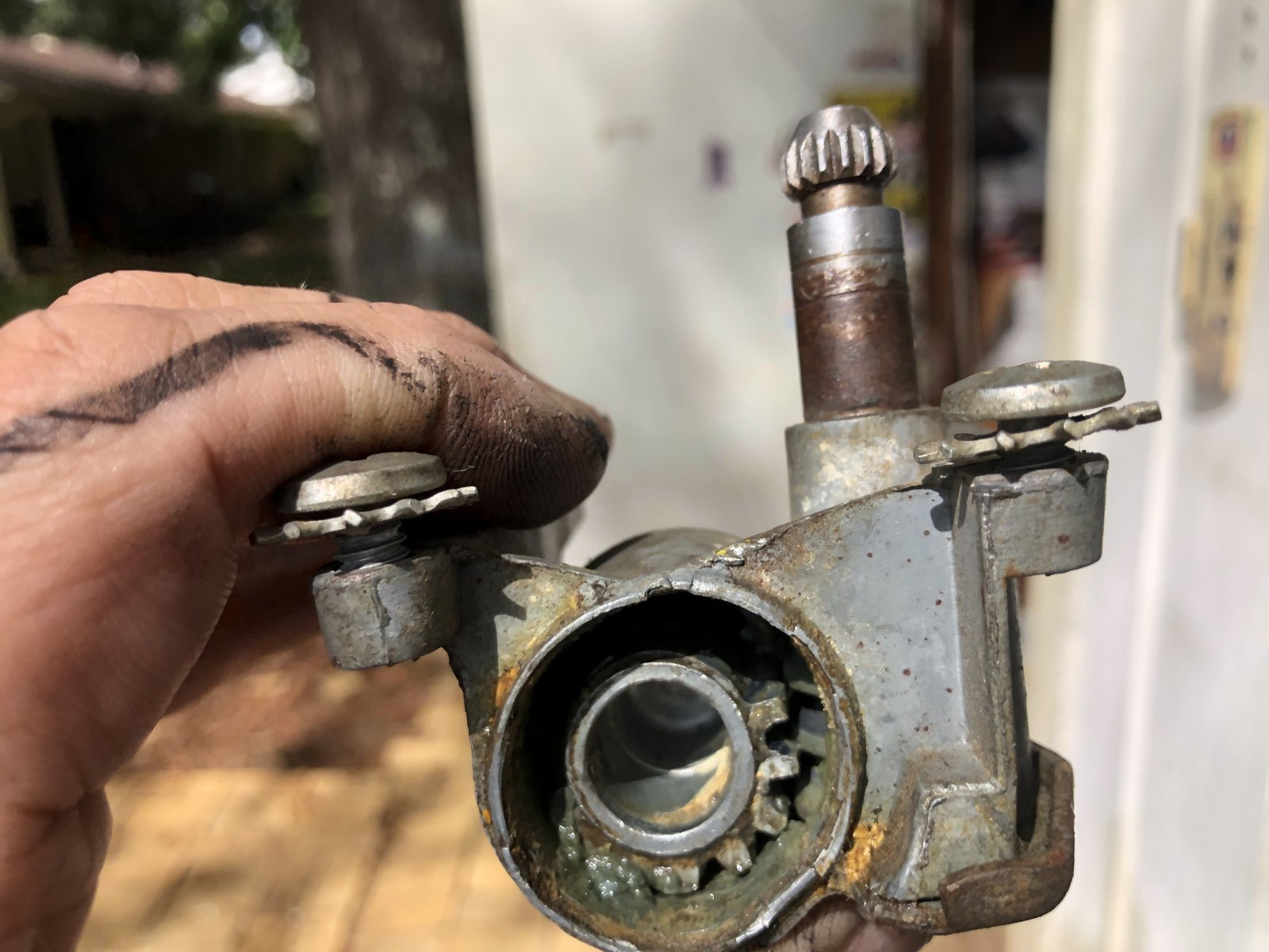 Vent window regulator had to be retoothed so to speak. Took a chisel and a file and straightened them out. Back together and some grease and we are in business. Windows /vent window felt /channel are in and functional. Now passenger side