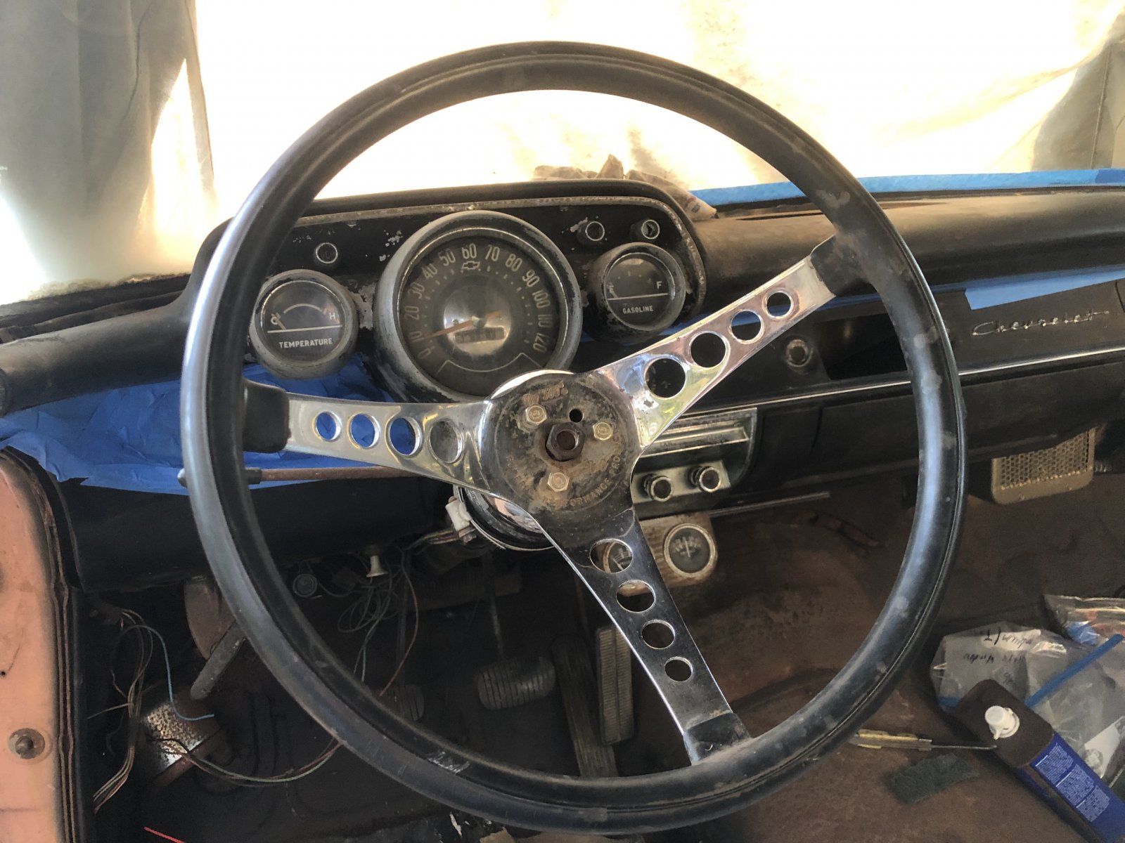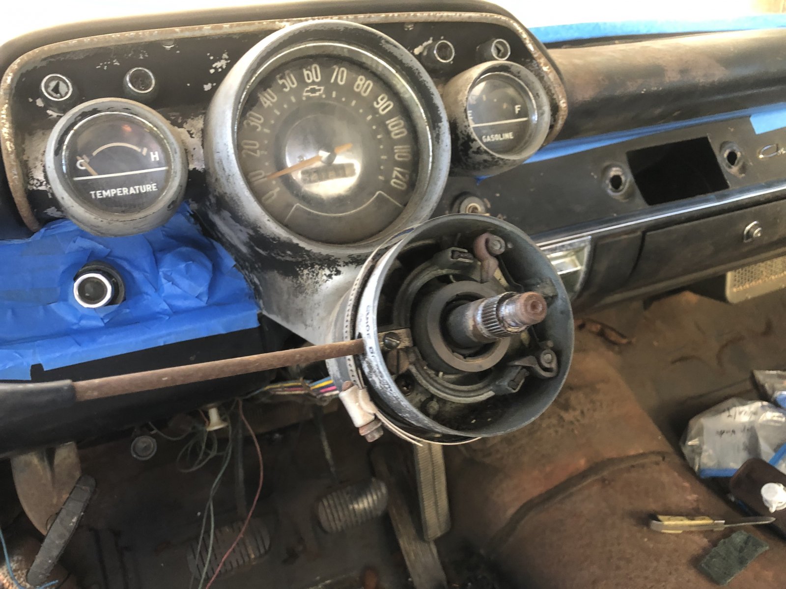 Pulled and test fitted the steering wheel/ they said I’d have to to get the cluster out any way. Luck has it that the turn signal assembly appears to be perfect. Gonna touch up the top of the dash. The rest will be left alone.