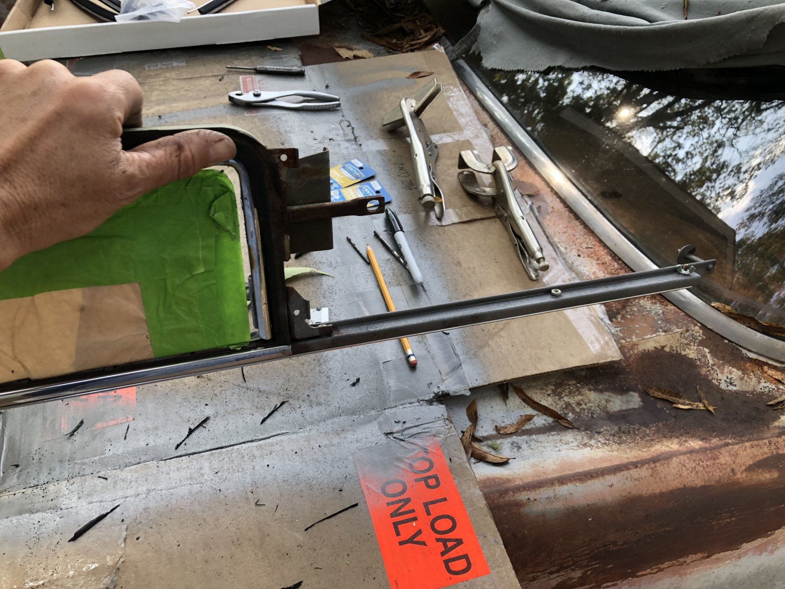 Both of my rear quarter windows are cracked and also have some delamination bubbles in them but the windows are so cool I couldn't bear to replace them. Your new glass looks good. All those felt sweeps and channels are a real bear, especially since the new ones don't come with the factory clips installed (at least the ones I got didn't, just generic sticks I had to bend up myself) so it can be a bitch to get them in there snug. But it's a must-have thing, nothing ruins glass like crappy window channels with all of the felt torn out.
