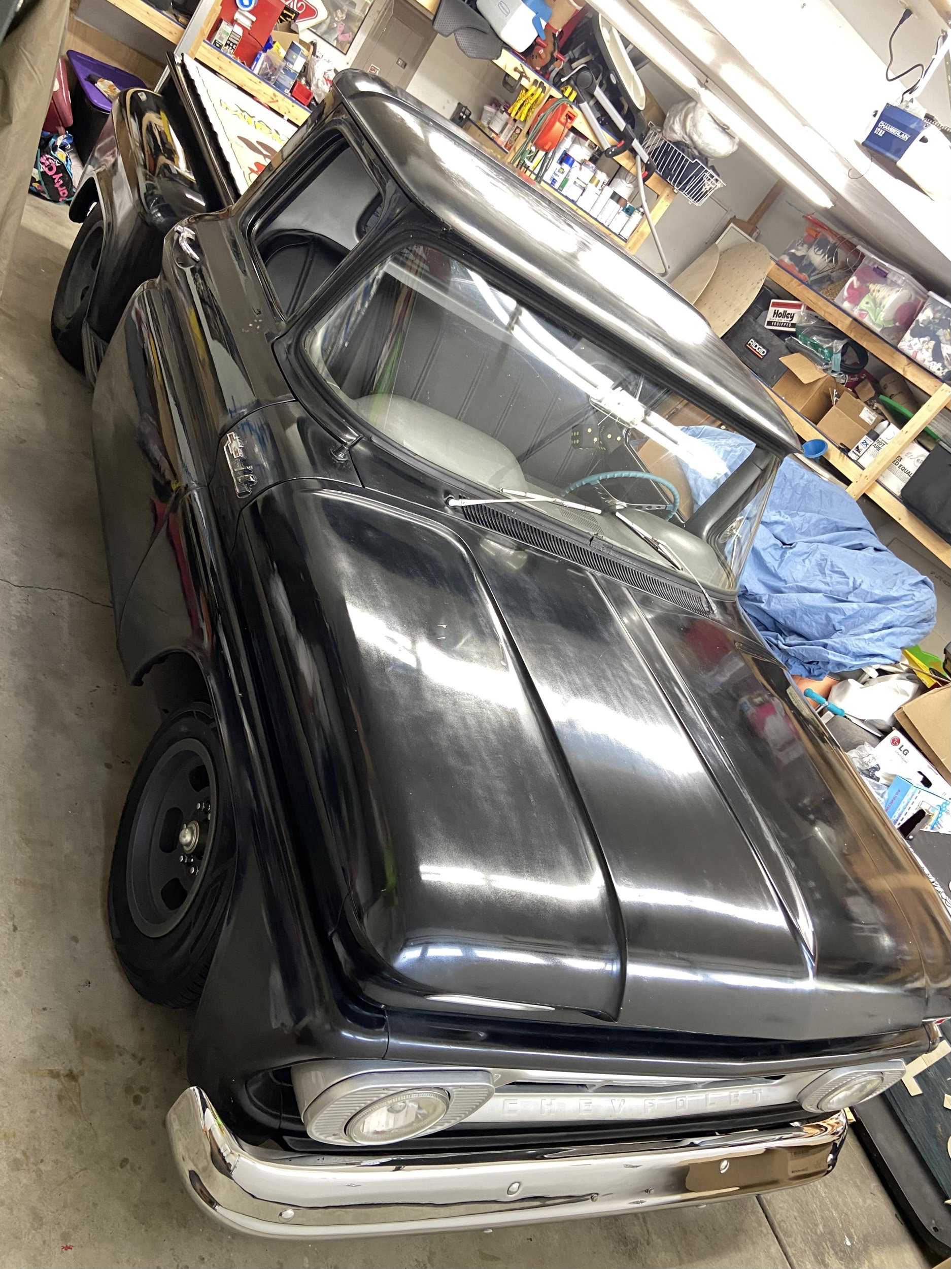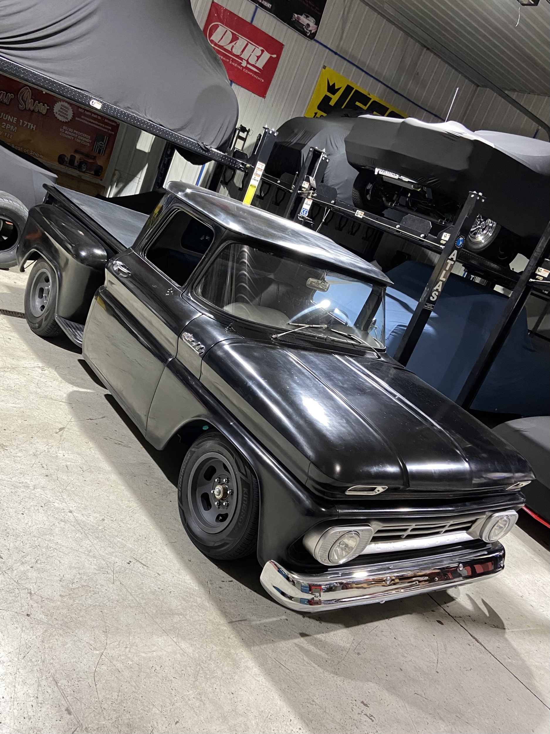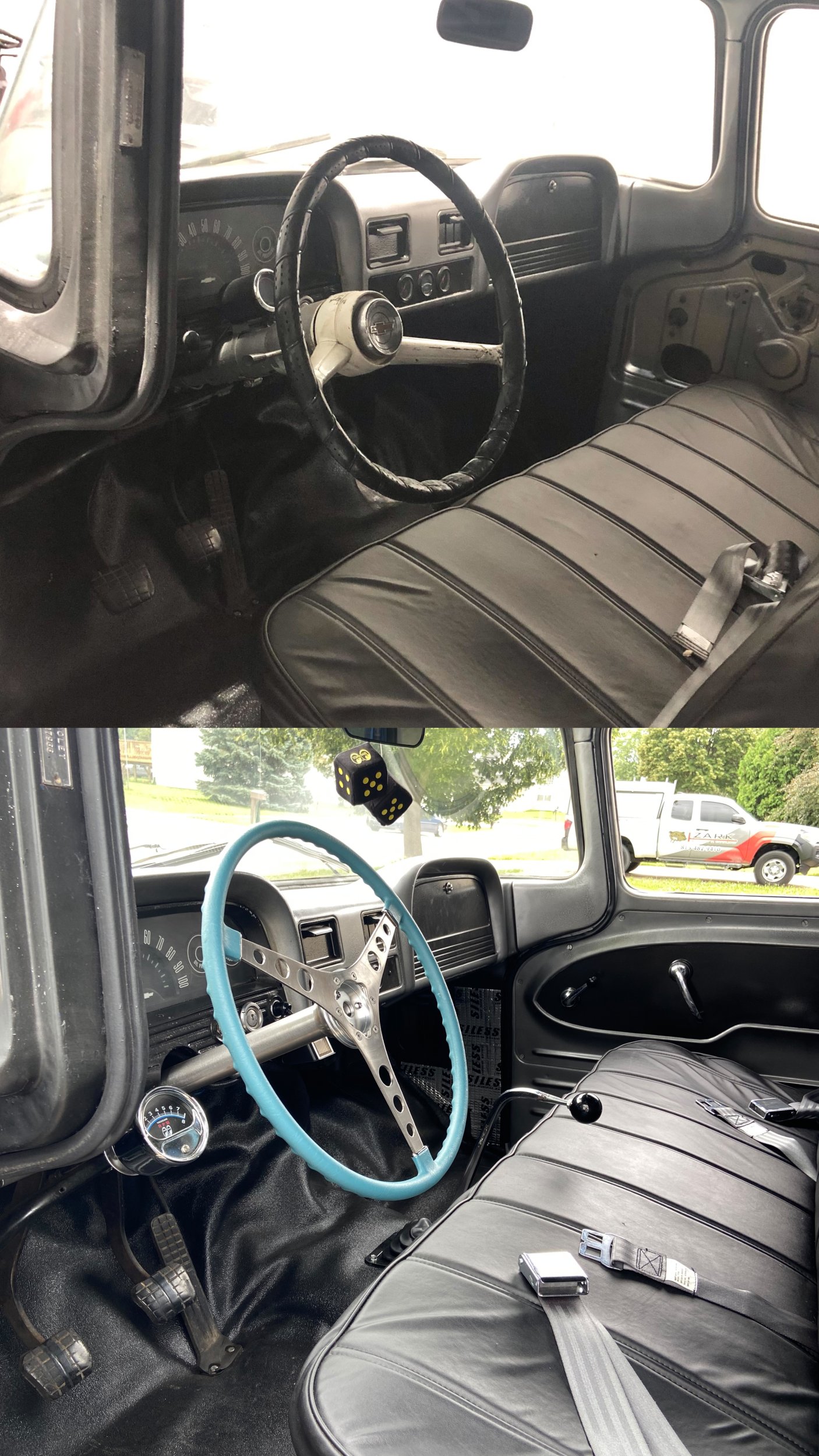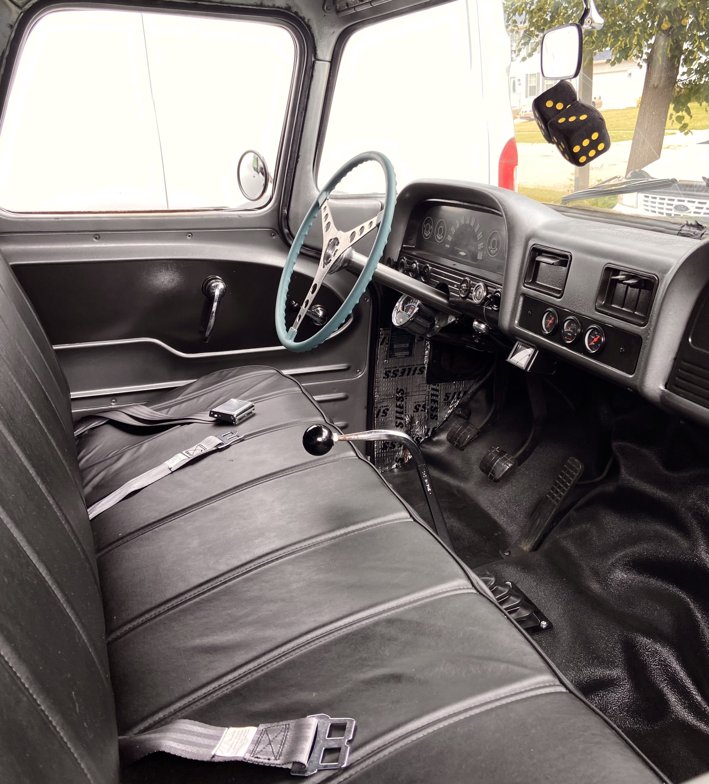 After the “Big Cat,” I wanted to find a decent little truck to turn into a little hotrod with my daughter. Started with this 62 that my dad’s friend had tucked into the back of his garage for a long time. He was going through a divorce and had to clear some space and picked it up for a deal. Hadn’t ran in 20 years but I got the ole Stovebolt 235 and Saginaw working that same day. The Saginaw blew up days later, so I tossed in a T5, modified it to fit a correct Hurst, replaced the sloppy column with an Ididit hotrod column, a 62 corvette wheel, buffed out the old rattlecan paint, lowered it, new bumpers, new interior with sound deadening, and some faux mag slots. Was going to build up the 235 and toss on my triple sidedraft corvette intake but she’s tired and I have a perfectly new dual quad early 60’s-style SBC ready to go in it. Not as cool as the older rigs but still fun.