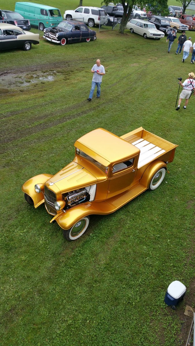 When I got it running, I took it over to mad striper Shannon, and he stood in the rumble seat floor and graced the top, right above the back window: